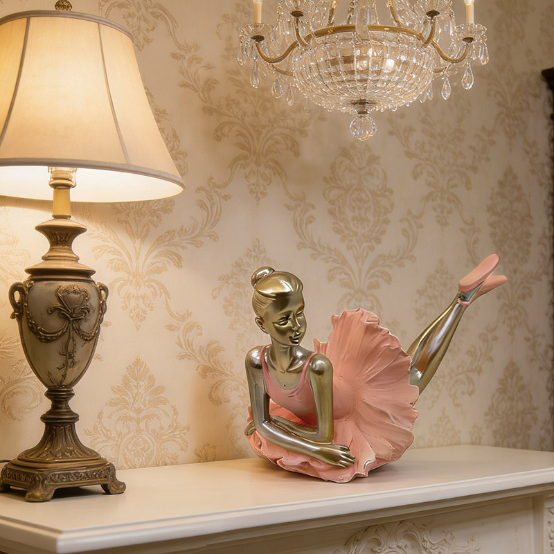 Europäische Luxus-Balletttänzerin-Figur – Kunstskulptur aus gold-weißem Kunstharz – zarte Dekoration für den Schlafzimmertisch