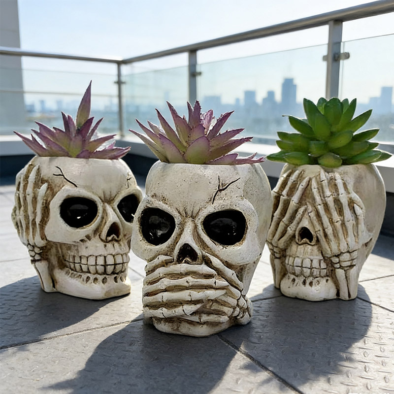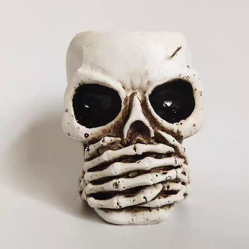 Halloween-Dekorationen:Mit diesem Totenkopf-Blumentopf und der Bonboniere verleihen Sie Ihrem Zuhause oder Garten eine geheimnisvolle und elegante Atmosphäre. Das realistische Totenkopf-Design im Horror- oder Halloween-Stil macht diese Geschenkidee zu einem außergewöhnlichen und zugleich schaurigen Erlebnis – perfekt für Halloween-Fans, Gärtner und Sammler von Horror-Dekorationen. Die Totenkopfschale ist ein ideales Geschenk, das Funktionalität mit düsterem Kunststil verbindet.