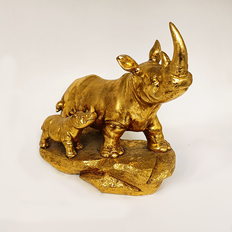 The main part is made of resin, a highly malleable material that can precisely shape the strong muscle lines, rough skin texture and sharpness of the rhinoceros horn of the rhinoceros. Ancient gold: It has an aged effect,