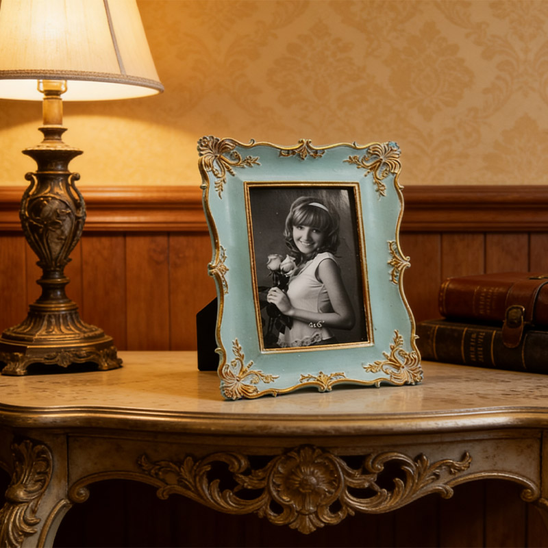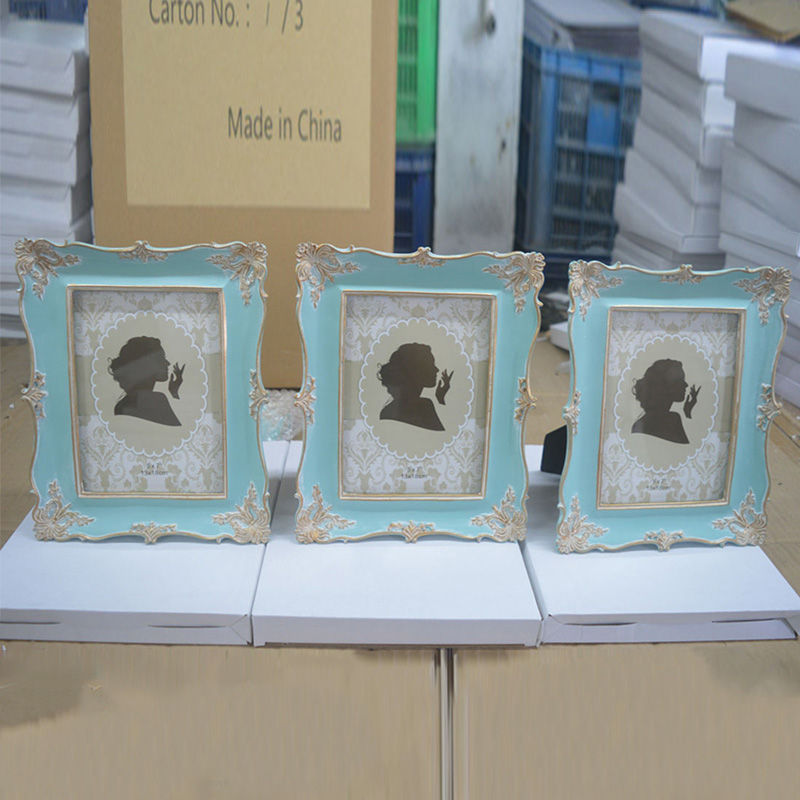 Wir bieten hochwertige Polyresin-Fotorahmen Mit seinem Design im Vintage-Barockstil ist dieses Modell 1767 mit einer handbemalten, antiken blau-goldenen Oberfläche versehen und eignet sich ideal für Einrichtungshäuser, Geschenkartikelläden und Anbieter von Hochzeitsartikeln. Die robuste Harzkonstruktion mit einer Echtglasfront sorgt für eine hohe Wertwahrnehmung bei Ihren Kunden.