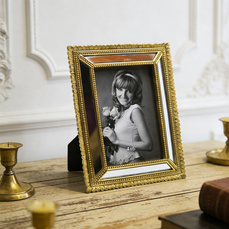 Dieser 4×6-Zoll-Fotorahmen aus Kunstharz ist im Retro-Court-Stil gestaltet.Es besteht aus hochwertigem Kunstharz und wurde mit sorgfältigen Schnitz- und Alterungstechniken bearbeitet. Der Rahmen ist mit Bordürenmustern verziert, die ihm eine dichte und kunstvolle Textur verleihen.