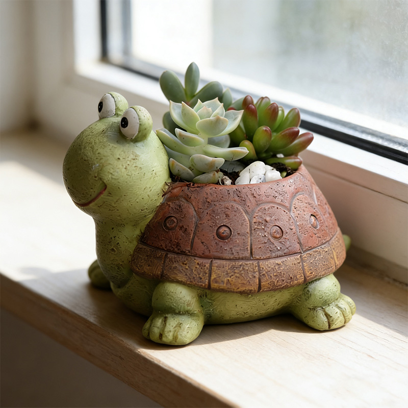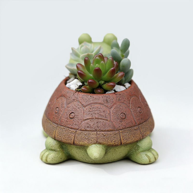 Dieser Sukkulenten-Blumentopf in Form einer Schildkröte aus Kunstharz Inspiriert von einer Cartoon-Schildkröte, besticht dieser Blumentopf durch seinen grünlich-blauen Körper und den bräunlich-roten, strukturierten Panzer – ein lebendiges und liebenswertes Design. Das robuste und langlebige Kunstharz sorgt für Langlebigkeit. Der Innenraum bietet optimale Wachstumsbedingungen für Sukkulenten und ermöglicht die gleichzeitige Bepflanzung mehrerer Exemplare. Ob auf dem Schreibtisch oder Balkon, dieser Blumentopf ist nicht nur praktisch, sondern auch ein stilvolles Dekorationsobjekt.